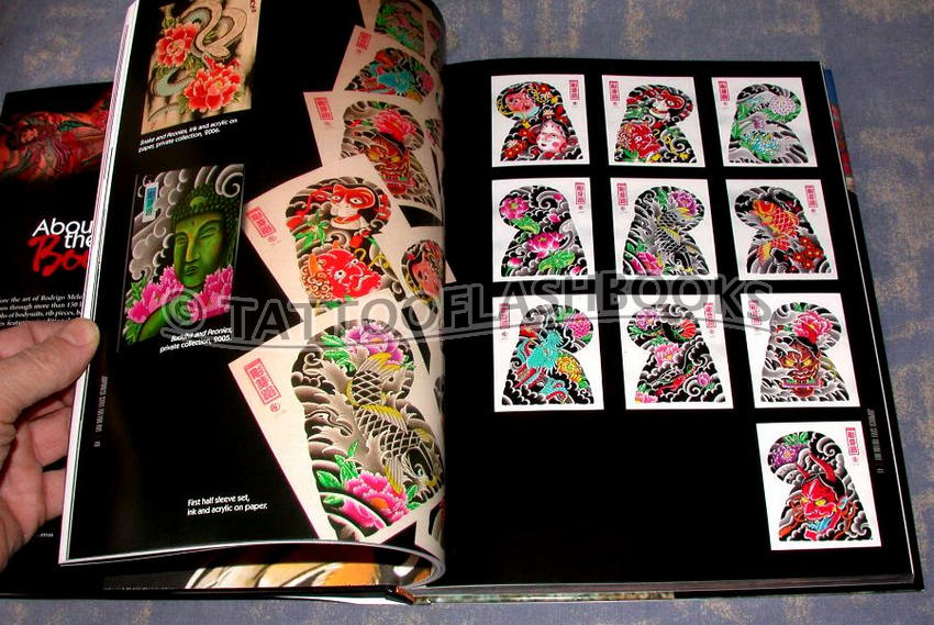 Hardcover 341-photo book that captures Rodrigo Melo's Japanese-style tattoos, including more than 150 lush full-color studio photographs of bodysuits, rib pieces, back pieces, and sleeves featuring traditional themes and imagery.